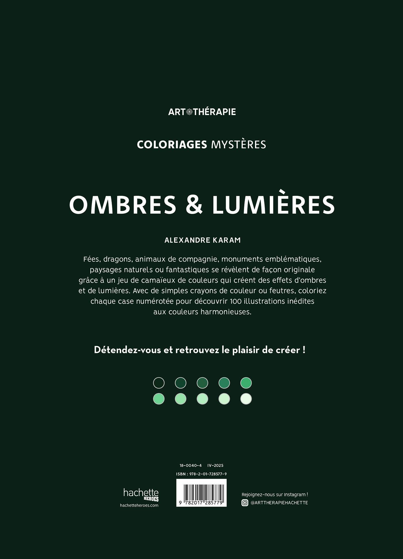 Fées, dragons, animaux de compagnie, monuments emblématiques, paysages naturels ou fantastiques se révèlent de façon originale grâce à un jeu de camaïeux de couleurs qui créent des effets d’ombres et de lumières. Avec de simples crayons de couleur ou feutres, coloriez chaque case numérotée pour découvrir 100 illustrations inédites aux couleurs harmonieuses.