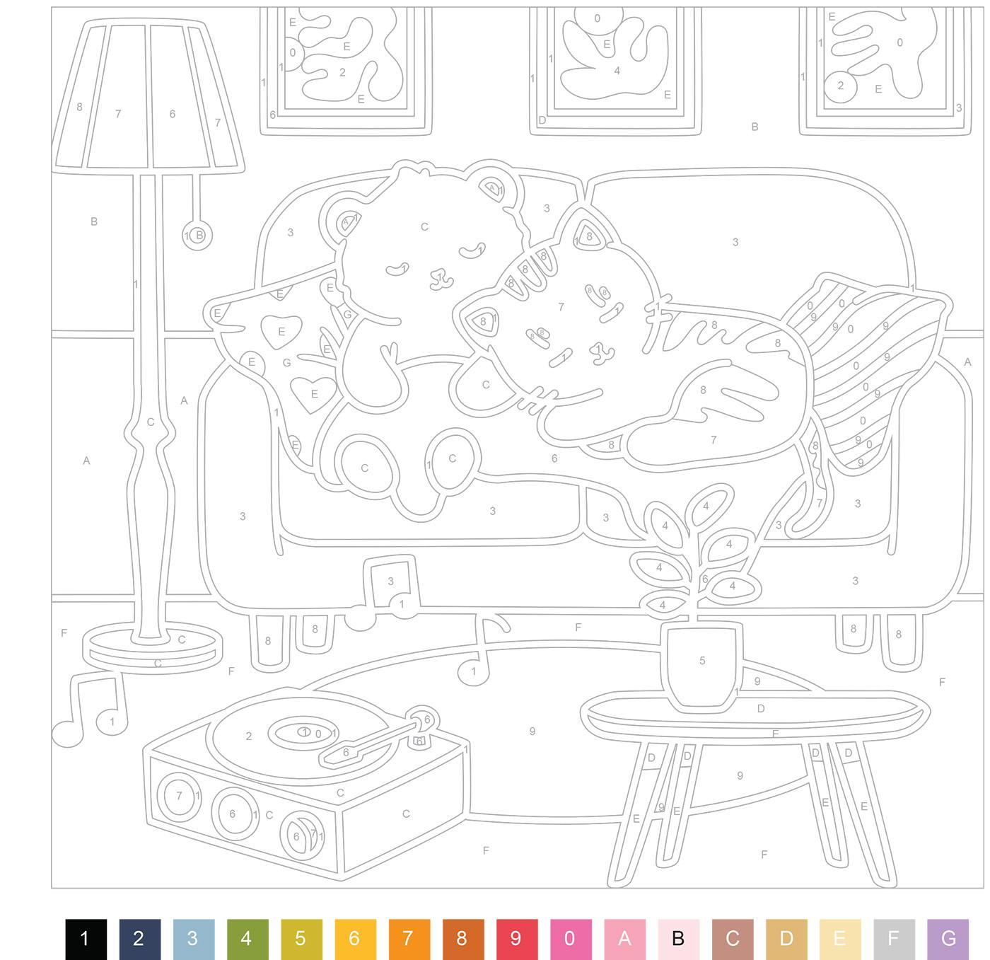Coloriez les cases numérotées en suivant les codes couleurs et découvrez des illustrations 100 % cozy !