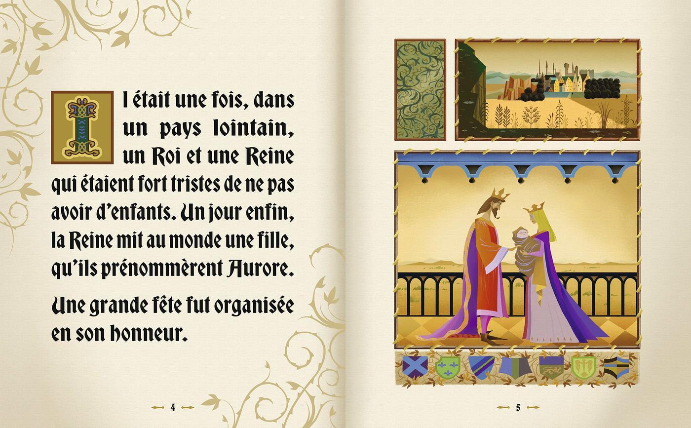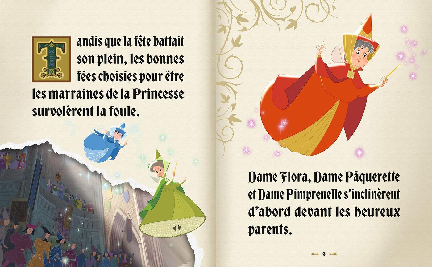 Résumé : Le jour de son baptême, la princesse Aurore est victime d’un sort funeste que lui jette la sorcière Maléfique : avant son seizième anniversaire, elle se piquera le doigt sur la pointe d’un rouet et tombera dans un profond sommeil. Seul le baiser d’un prince pourra alors la réveiller ! Pour la protéger, ses marraines fées la cachent dans la forêt, jusqu’au jour où son destin la rattrape…