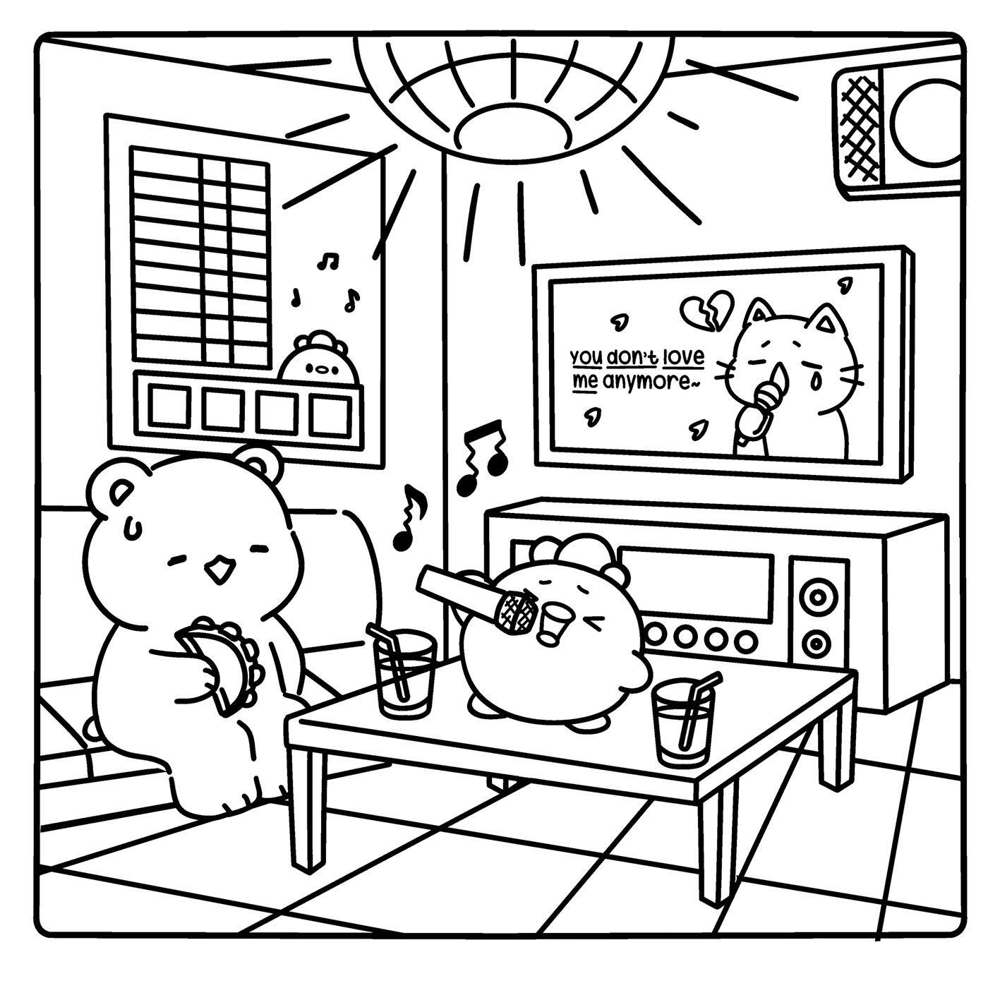 DES ILLUSTRATIONS COZY - simples et satisfaisantes à colorier, avec des lignes arrondies et épaisses