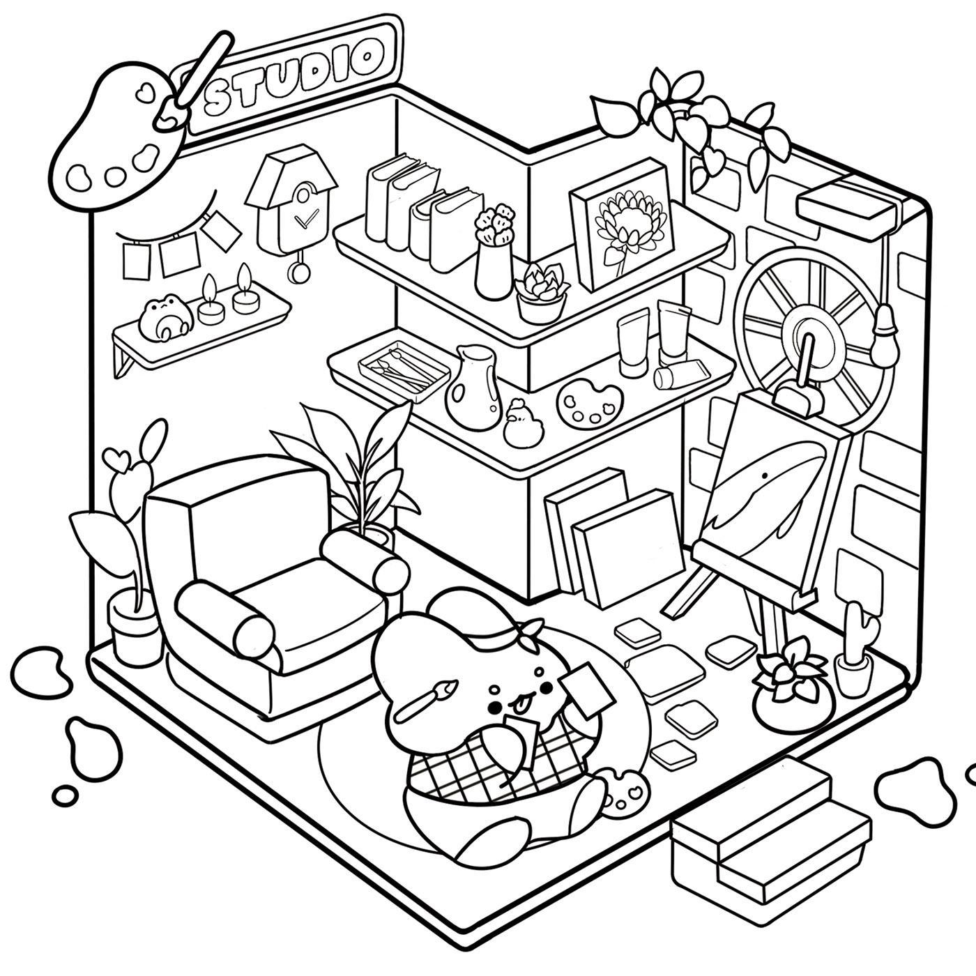 DES ILLUSTRATIONS COZY - simples et satisfaisantes à colorier, avec des lignes arrondies et épaisses