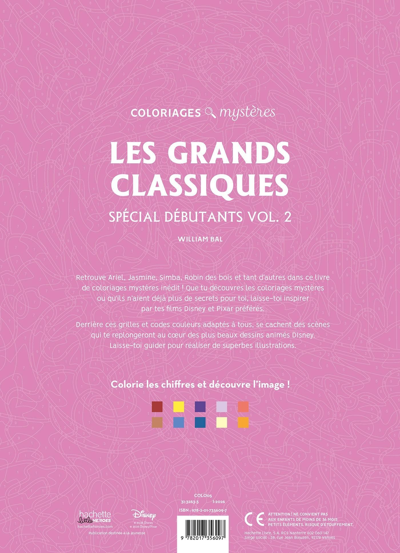 Retrouve Ariel, Jasmine, Simba, RObin des bois et tant d'autres dans ce livre de coloriages mystères inédits ! Que tu découvres les coloriages mystères ou qu'ils n'aient déjà plus de secrets pour toi, laisse-toi inspirer par tes films Disney et Pixar préférés.