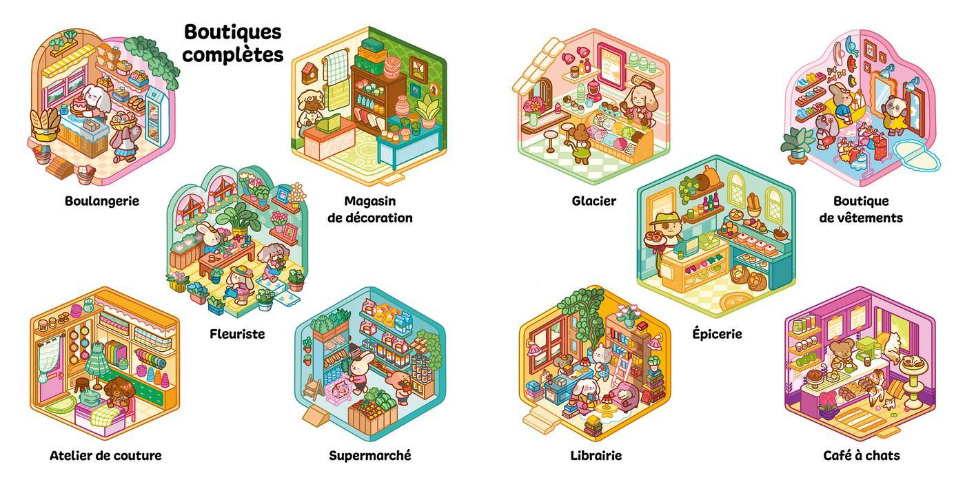 Plongez dans l'univers merveilleux des cozy stickers ! Laissez libre cours à votre imagination et créez vos boutiques de rêve, telles que vous les avez toujours imaginées ! Que vous aimiez les cafés douillets, les librairies vintage ou les boulangeries gourmandes, ce livre est fait pour vous !