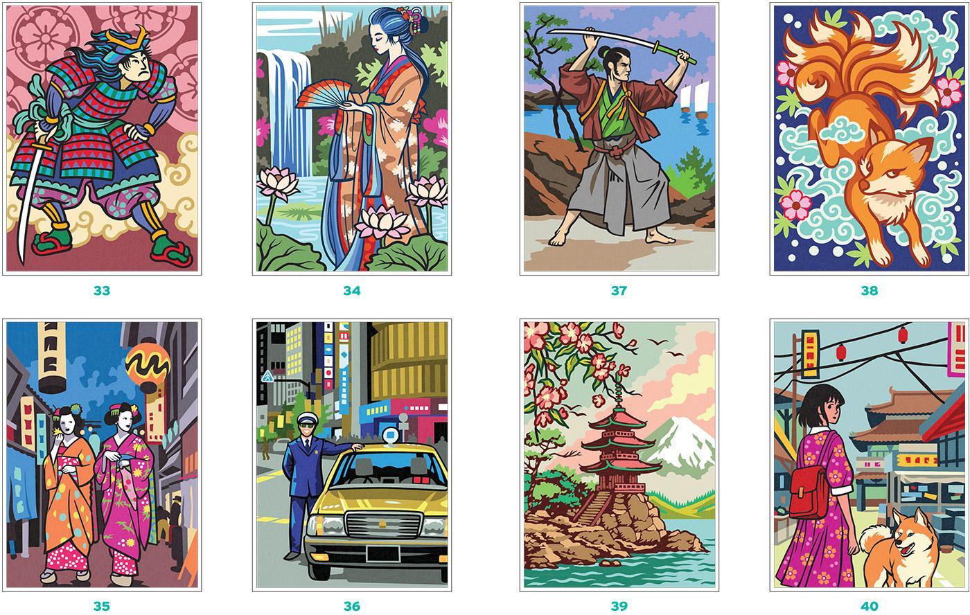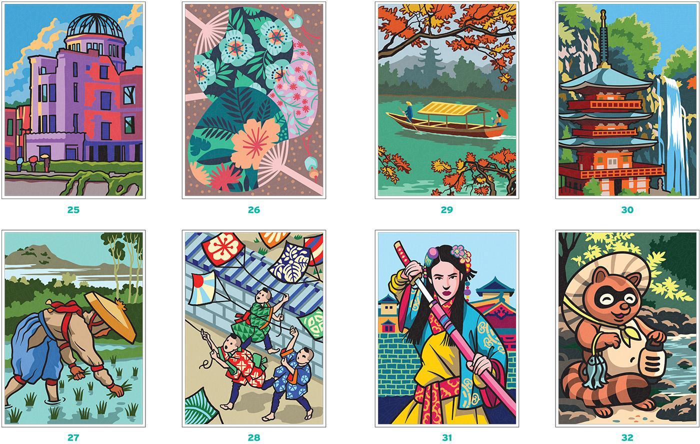 Découvrez dans cet ouvrage la beauté et la sérénité du Japon : paysages, temples anciens, jardins zen, motifs traditionnels, élégantes geishas, créatures mythologiques. Entre tradition, effervescence des métropoles nippones et extravagance de la pop culture, voici 100 coloriages inspirés du pays du Soleil-Levant. Avec de simples crayons de couleur ou feutres, coloriez chaque case numérotée pour découvrir des illustrations inédites et donner vie à ces images fascinantes.