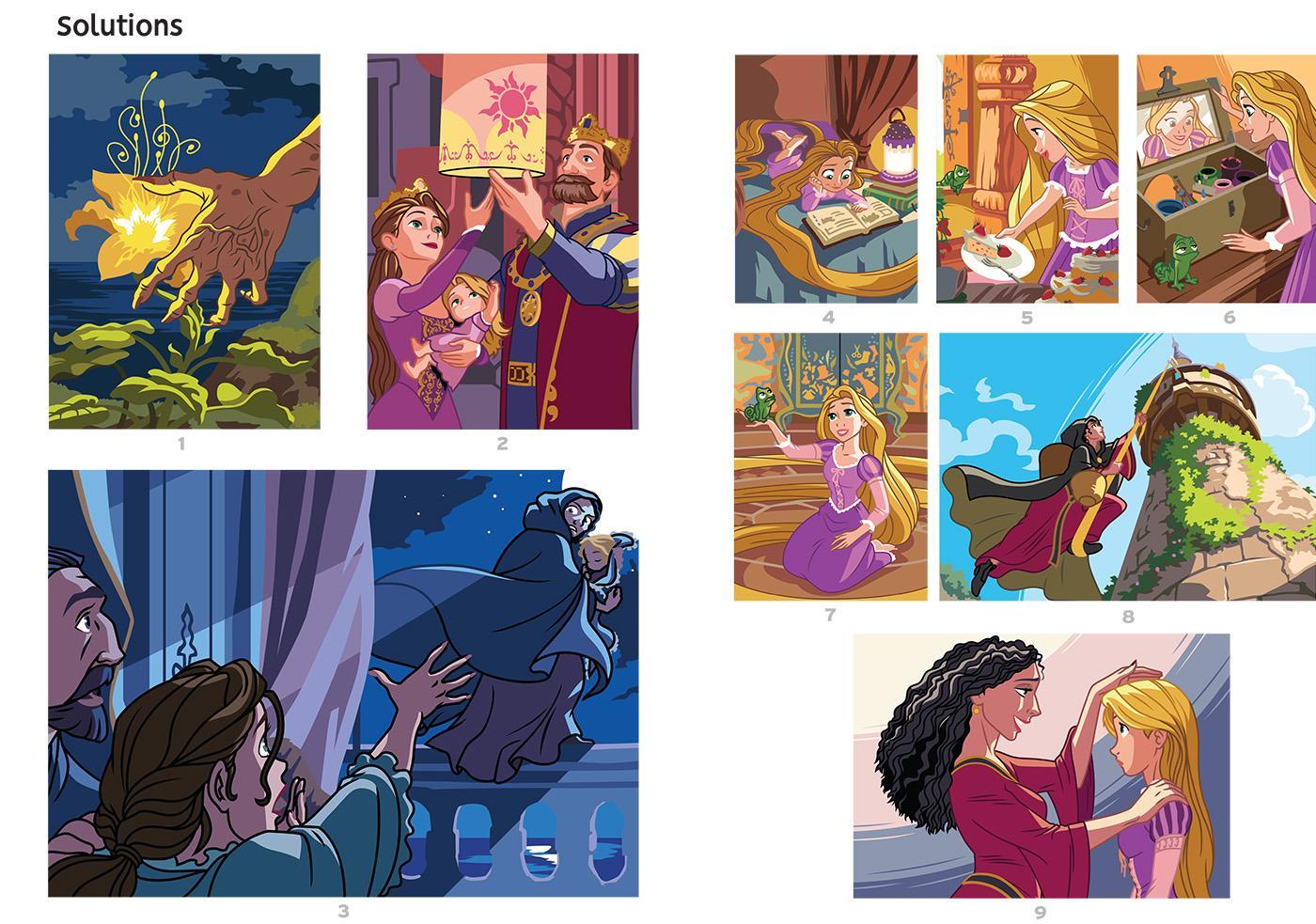 Retrouve tous les personnages et les moments forts de l'histoire : la naissance de Raiponce puis son enlèvement par Mère Gothel, sa jeunesse passée dans la tour, sa rencontre avec Flynn et Maximus, sa découverte du monde extérieur, jusqu'à son arrivée au royaume de Corona. Sans oublier Pascal, son fidèle petit caméléon, toujours prêt à l'accompagner dans toutes ses aventures.