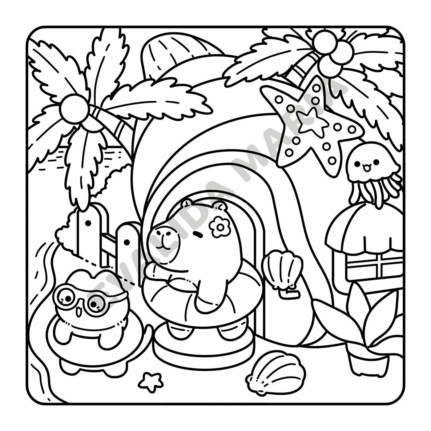 Partez à l'aventure avec un adorable capybara, calme et affectueux, et tous ses amis ! Un bain relaxant, une balade champêtre, un pique-nique gourmand et même une chorale magique : attrapez vos crayons, installez-vous confortablement et donnez vie à des scènes 100% cozy, pleines de complicité et de douceur.
