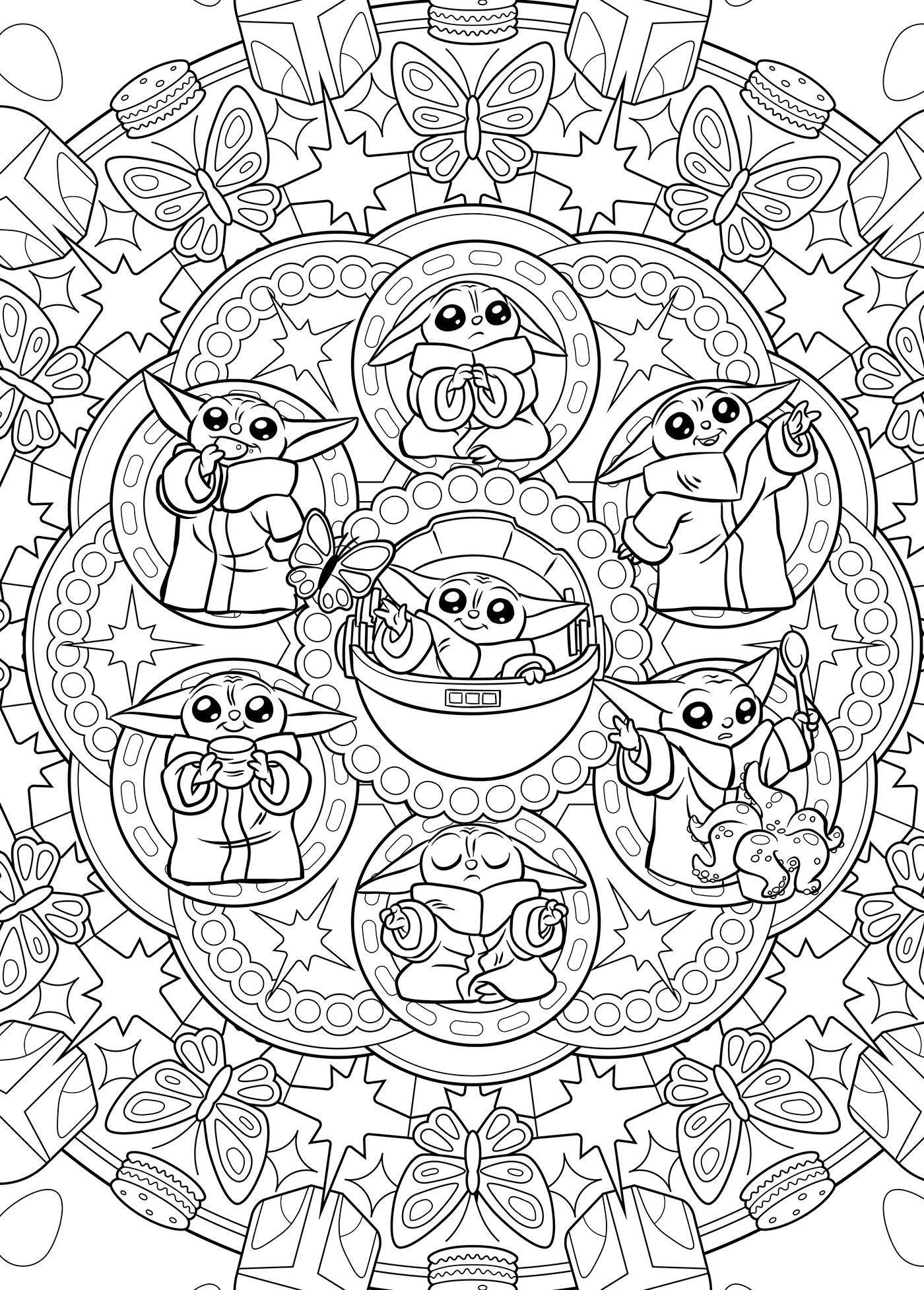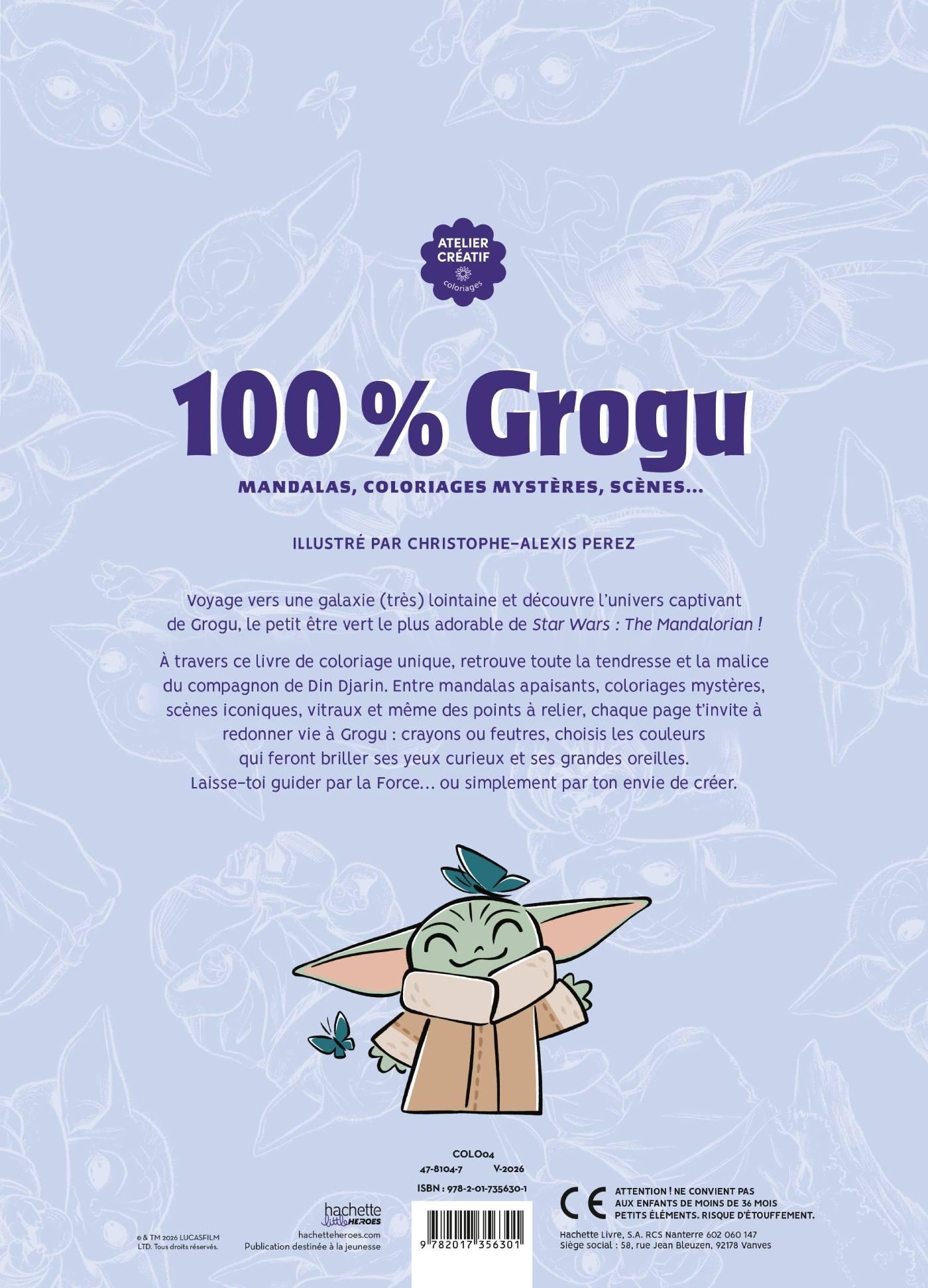 À travers ce livre de coloriage unique, retrouve toute la tendresse et la malice du compagnon de Din Djarin. Entre mandalas apaisants, coloriages mystères, scènes iconiques, vitraux et même des points à relier, chaque page t’invite à redonner vie à Grogu : crayons ou feutres, choisis les couleurs qui feront briller ses yeux curieux et ses grandes oreilles.
