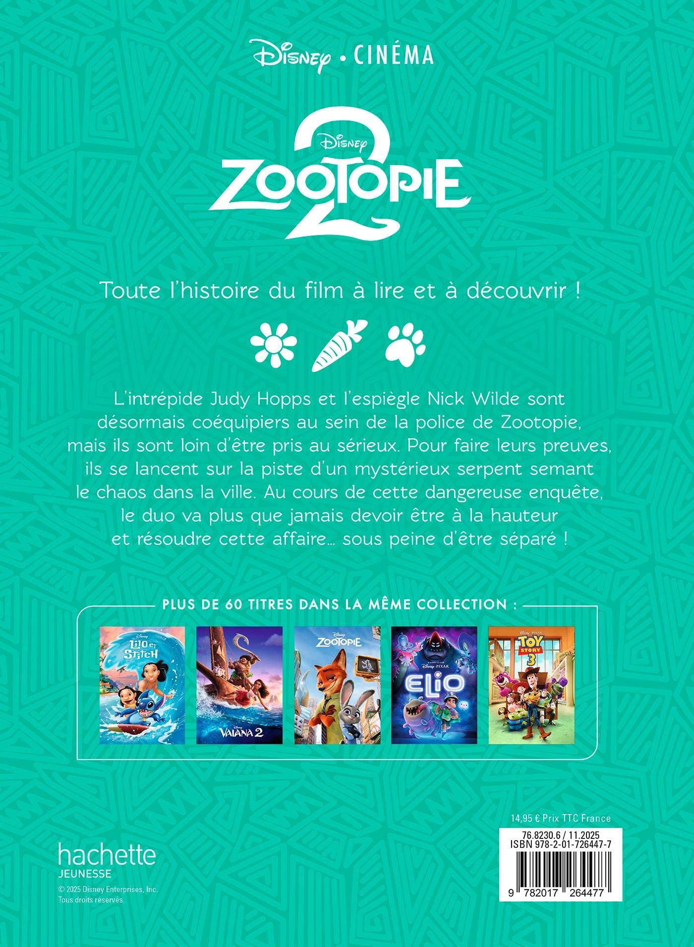 Résumé : L’intrépide Judy Hopps et l’espiègle Nick Wilde sont désormais coéquipiers au sein de la police de Zootopie, mais ils sont loin d’être pris au sérieux. Pour faire leurs preuves, ils se lancent sur la piste d’un mystérieux serpent semant le chaos dans la ville. Au cours de cette dangereuse enquête, le duo va plus que jamais devoir être à la hauteur et résoudre cette affaire… sous peine d’être séparé !