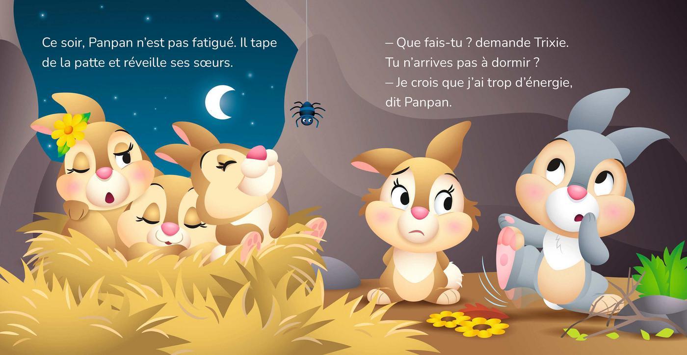 Résumé : Ce coquin de Panpan n’a pas sommeil et réveille ses sœurs. Pour se rendormir, elles lui demandent de leur raconter une histoire…